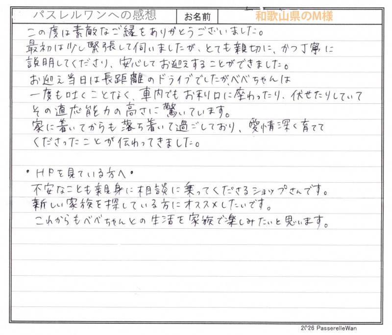 和歌山県のM様 、 お名前:べべちゃん