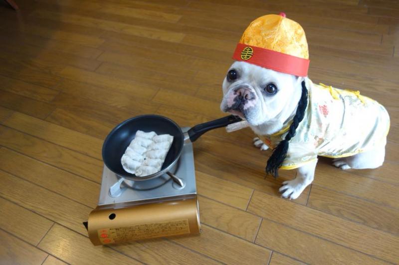 「餃子焼いてますw」