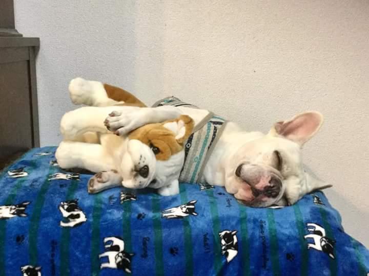 「ブヒの布団でブヒが寝るw」